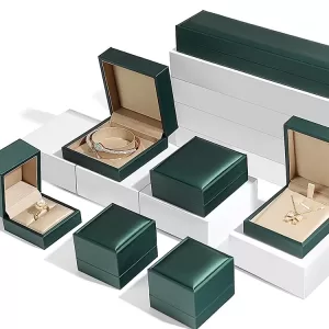 Emerald Green Brushed PU Jewelry Box Wholesale | Gold Satin Interior Series