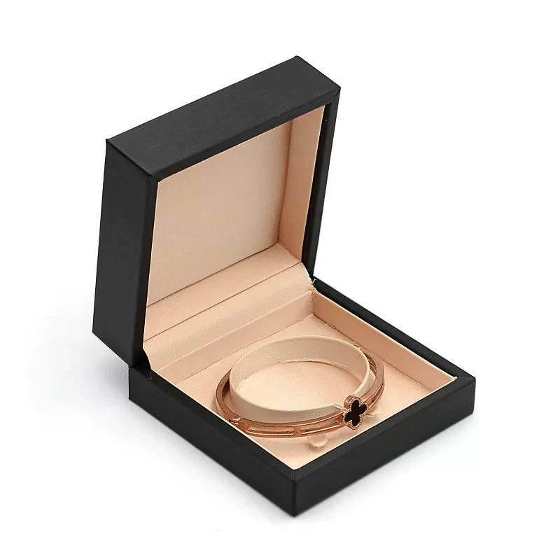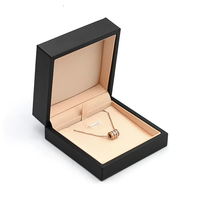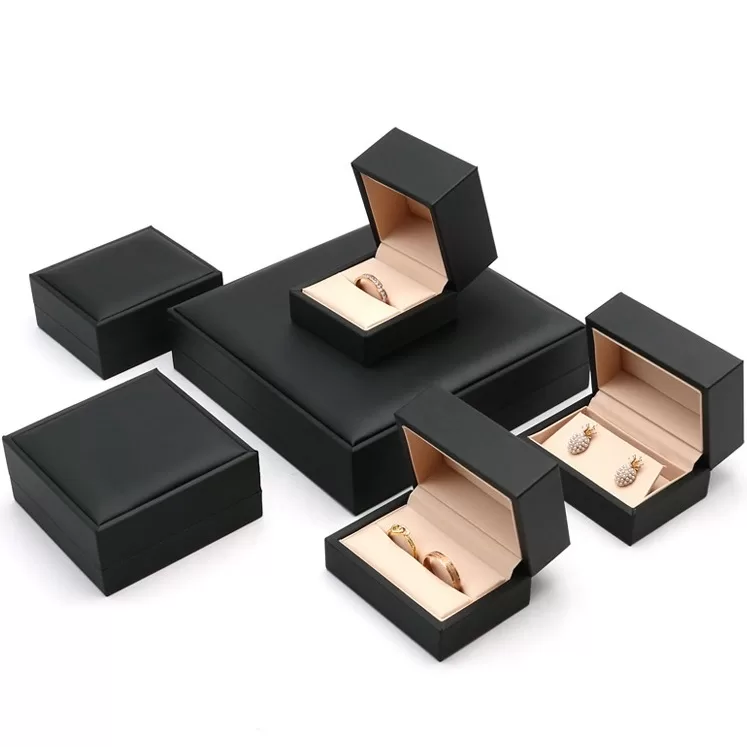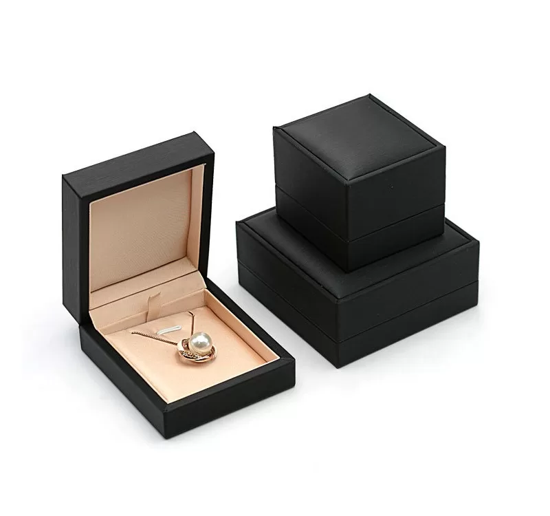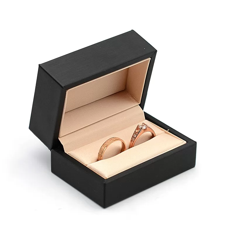 For brands that demand a sleek, contemporary look, our Black Brushed Leatherette Jewelry Box Wholesale collection is the ultimate choice. Moving away from traditional curves, the 001-D series features sharp, 90-degree corners and a unique brushed PU leather finish. The contrast between the matte black exterior and the warm rose gold interior creates an unforgettable unboxing experience for high-end rings and accessories.