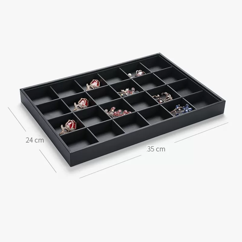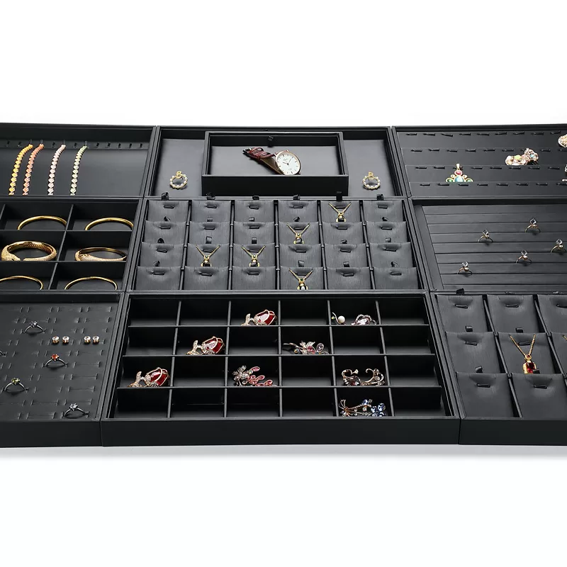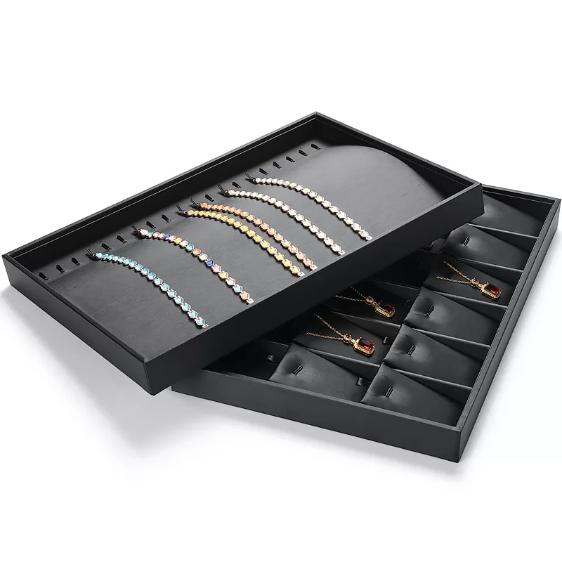 Consider adjectives describing your jewelry—is it casual, trendy, or formal? Let your display design echo these descriptive keywords to create a cohesive and branded shopping experience. A Multi-compartment Black PU Leather Jewelry Tray offers a versatile solution, as its clean and organized layout can be adapted to various styles, from modern minimalist to classic elegance. This allows you to present a diverse collection neatly while maintaining a consistent visual theme that reinforces your brand identity.