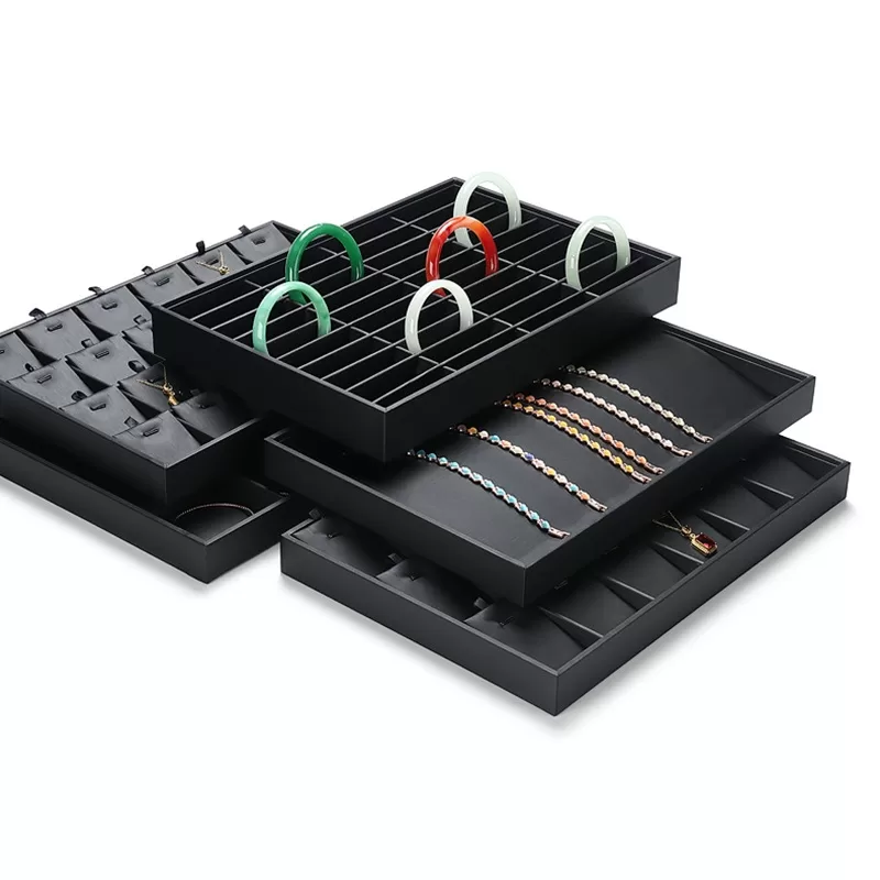 The display style must harmonize with the jewelry itself. For high-end, unique pieces, present each item distinctively and refinedly. Jewelry set with precious gemstones is best highlighted against dark, luxurious backgrounds to emphasize its brilliance. A Black PU Leather Jewelry Tray with Fabric Insert is perfect for this, offering a sophisticated, non-abrasive surface that makes diamonds and gemstones sparkle. For eclectic pieces incorporating beads or raw stones, introduce varied colors and textures in your display choices to match their unique character.