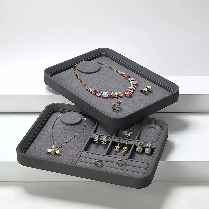 The display style must harmonize with the jewelry itself. For high-end, unique pieces, focus on a distinctive and refined presentation. Jewelry set with precious gemstones is perfectly complemented by a Luxury Black PU Leather Jewelry Presentation Tray, which highlights their brilliance and adds a touch of sophistication. For eclectic pieces, introduce varied colors and textures. Let your display design echo the descriptive keywords of your jewelry, whether casual, trendy, or formal.