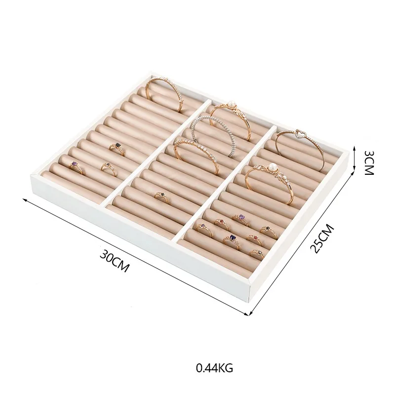 Unlike standard velvet trays, our brushed PU leather offers superior durability and a unique light-reflecting texture that enhances product photography and in-store viewing.