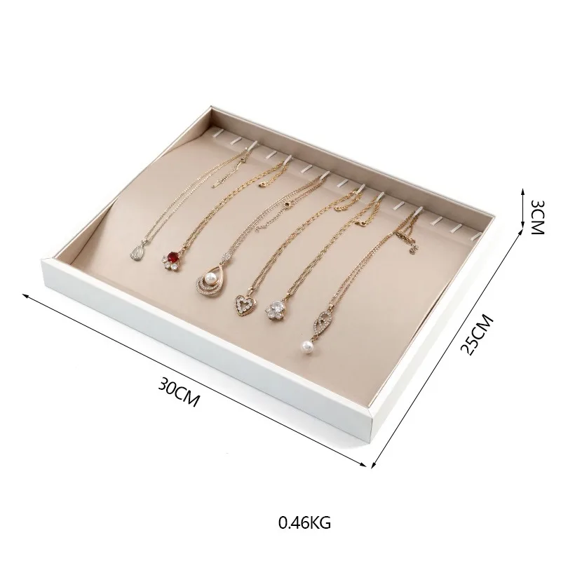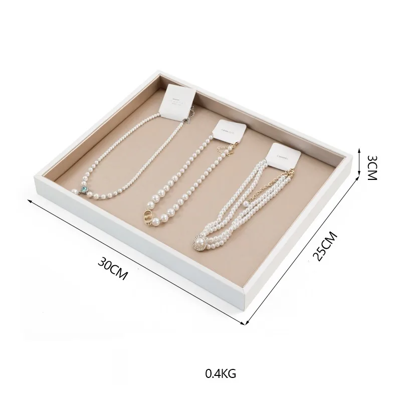 Transform your retail counter into a luxury stage with our Champagne Brushed Leather Jewelry Display Trays (Series DP-10). Combining a pristine white border with the sophisticated texture of brushed champagne PU leather, these trays offer a modern, high-end aesthetic that highlights the sparkle of gold, silver, and gemstones without distraction. Designed for professional jewelers, they offer modular versatility with an optional transparent acrylic lid for secure, dust-free storage.