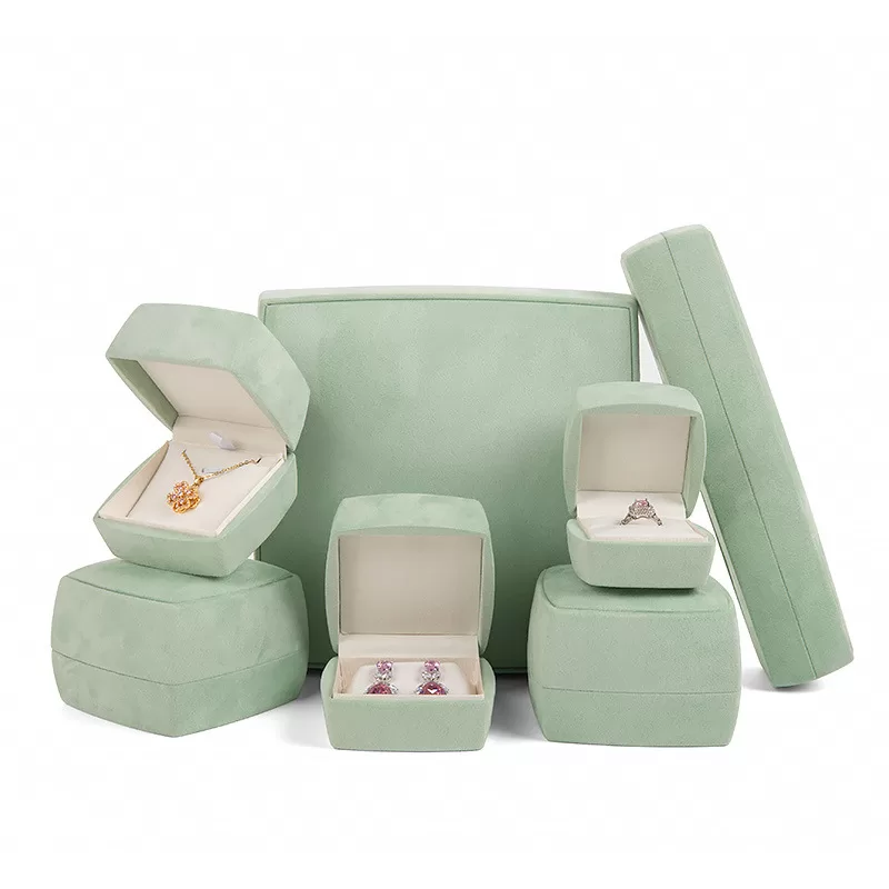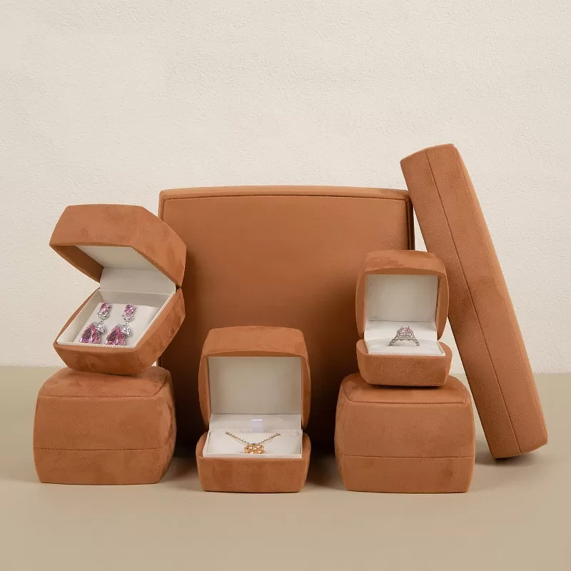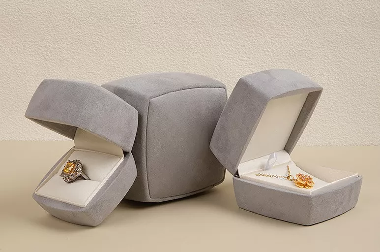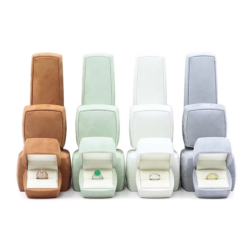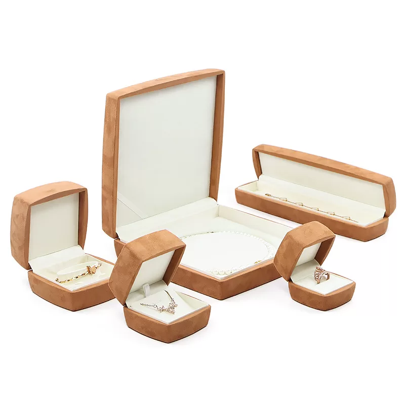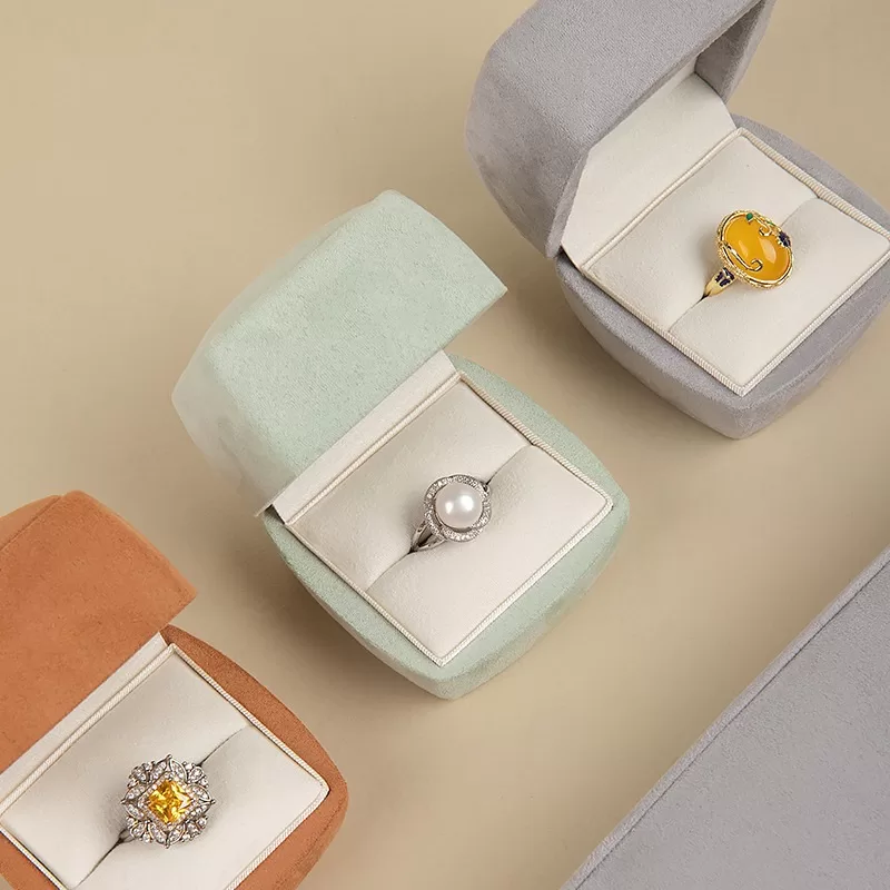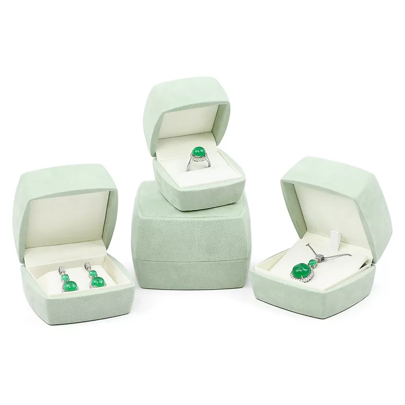 Experience the difference of weight and texture. Our Curved Thick-Edge Velvet Series stands apart with its “big belly” domed profile and substantial frame. Unlike thin, standard boxes, these feature a fully wrapped premium velvet exterior with thickened rounded edges, providing a robust yet incredibly soft tactile experience. It is the ideal protective sanctuary for high-value pearls, jade, and diamond sets, signaling durability and warmth to your customers instantly.