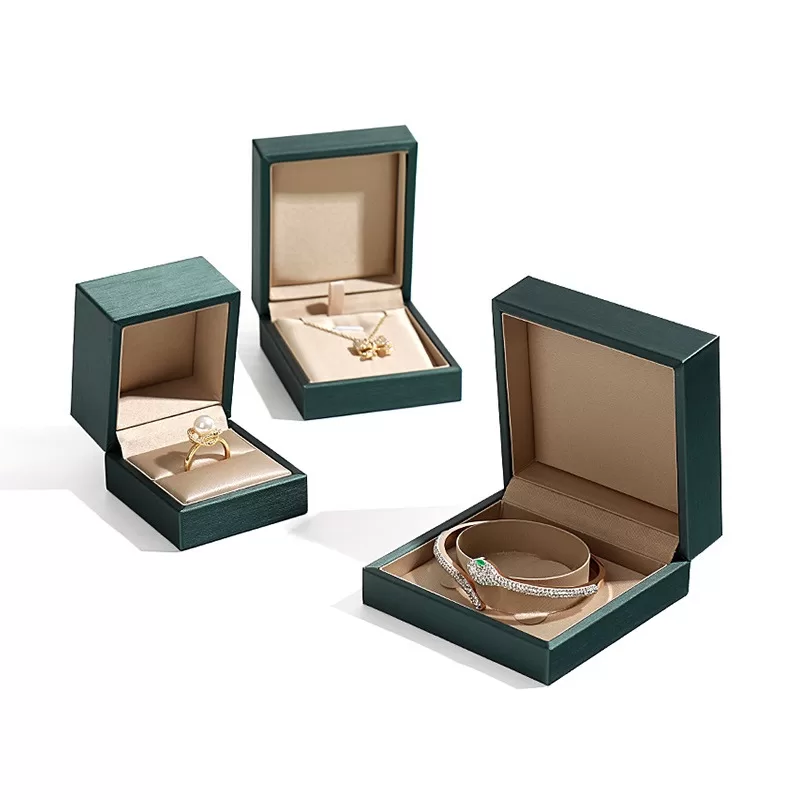 Add a touch of grandeur to your brand. Contact Louis Packing to customize your Emerald Green Satin Jewelry Boxes today.