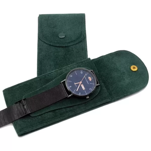 - Protective Hard Insert: Built with a structured hard shell interior (not just soft fabric) to maintain the pouch’s shape and provide superior impact resistance for the watch face.