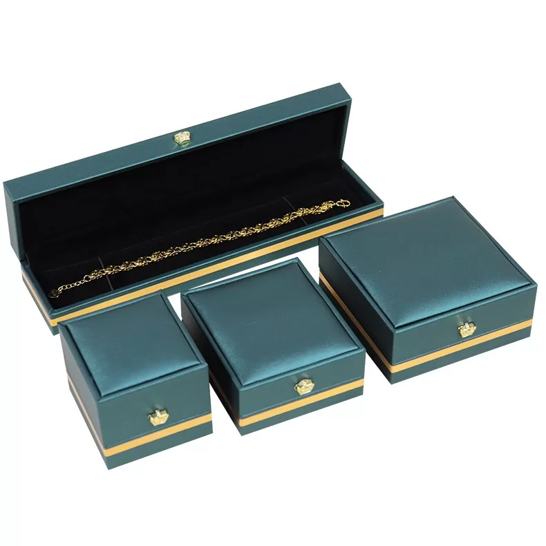 In the world of luxury packaging, details define value. Our Imperial Green PU Leather Jewelry Box (Model 111) commands attention with its stately presence. Unlike soft, rounded designs, this box features sharp right angles and a structured silhouette that signifies strength and permanence. The defining Gold Crown Snap Button and matching Gold Waistline create a striking contrast against the deep emerald leather, instantly elevating the perceived value of the jewelry within. It is not just a box; it is a coronation for your product.