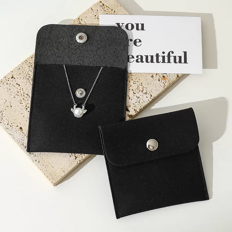 Discover the perfect balance of security and style with our Microfiber Envelope Jewelry Pouch. Featuring a sharp, right-angled square silhouette and a luxurious Gold Snap Button closure, this pouch offers a tactile experience akin to genuine suede but with superior durability. The envelope flap design allows for a dramatic “unveiling” moment, making it the preferred choice for contemporary jewelry brands aiming to leave a lasting impression.