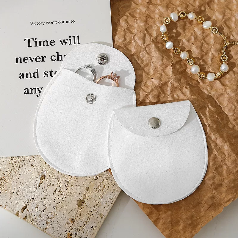 Break away from standard square packaging with our Oval Microfiber Jewelry Pouch. The gentle U-shaped silhouette offers a comfortable, ergonomic grip, while the High-Gloss Metal Snap Button provides a striking visual contrast against the matte suede texture. This pouch is designed for jewelry brands that value subtle elegance and tactile luxury, offering a secure yet stylish home for your customers’ most treasured pieces.