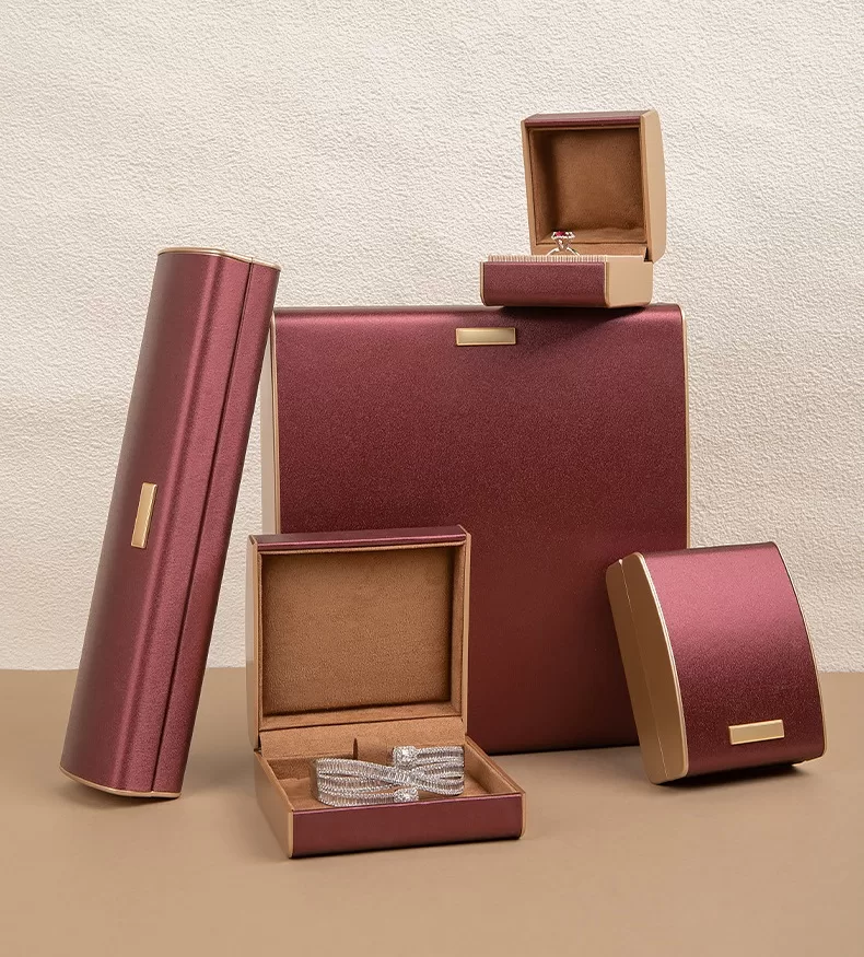 Move beyond flat colors with our Rose Gold Brushed Leather Jewelry Box. This packaging stands out with its unique “wire-drawing” texture that catches the light, mimicking the sheen of spun metal while maintaining the warmth of leather. The soft Arc Profile is accentuated by a minimalist Gold Metal Bar, creating a harmonious blend of feminine elegance and structural modernity. It is the perfect housing for rose gold jewelry, diamonds, and fashion-forward collections.