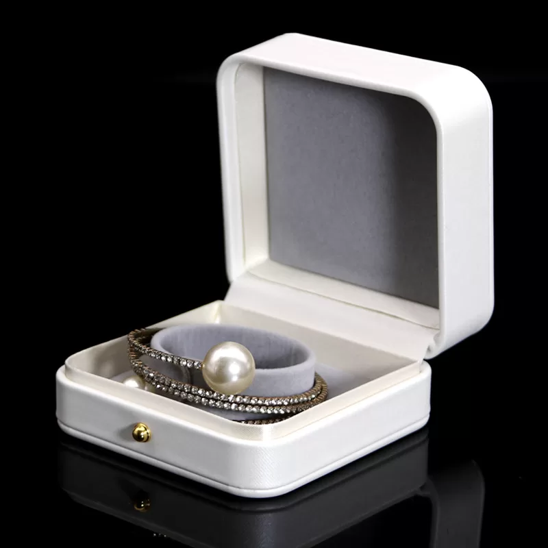 In the world of wedding jewelry, white is not just a color; it’s a statement of purity and new beginnings. Our Pure White Round PU Leather Jewelry Box takes the sleek, seamless design of our 072 series and dresses it in pristine white. The stark elegance of the white leather is punctuated only by a single, brilliant Gold Snap Button, creating a focal point that screams “Yes.” Designed specifically for jewelers who cater to the high-end bridal market.