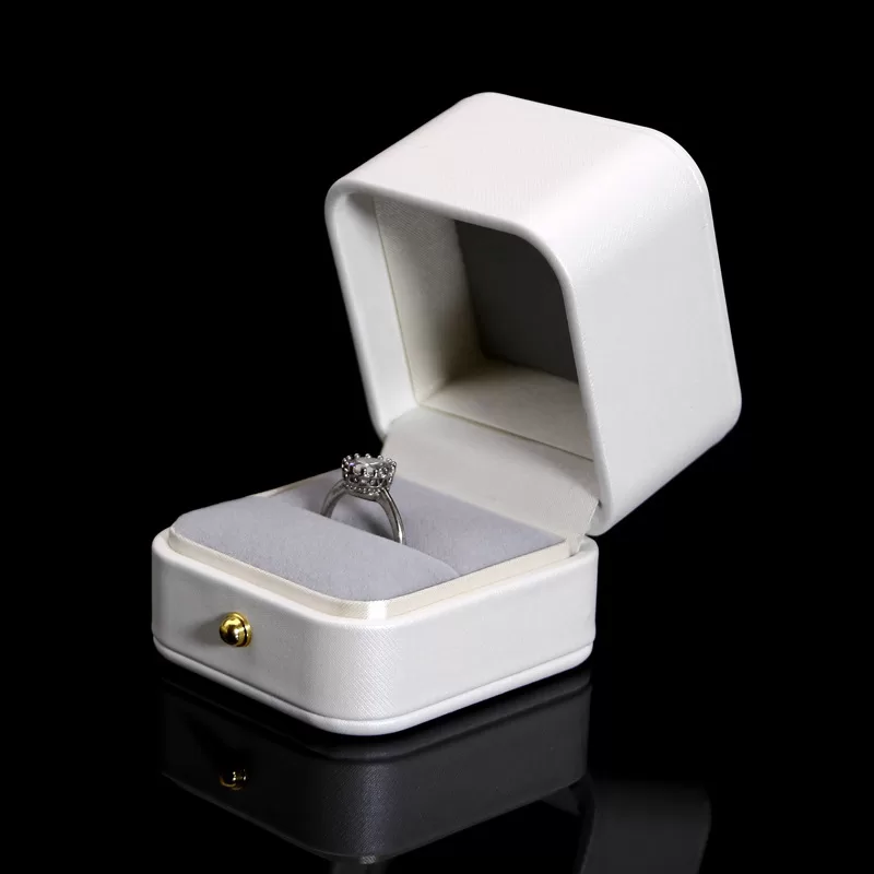 2. The “Proposal Ready” Factor: Research shows that end-consumers associate white leather packaging with high-end bridal jewelry. This box elevates the perceived value of engagement rings instantaneously.